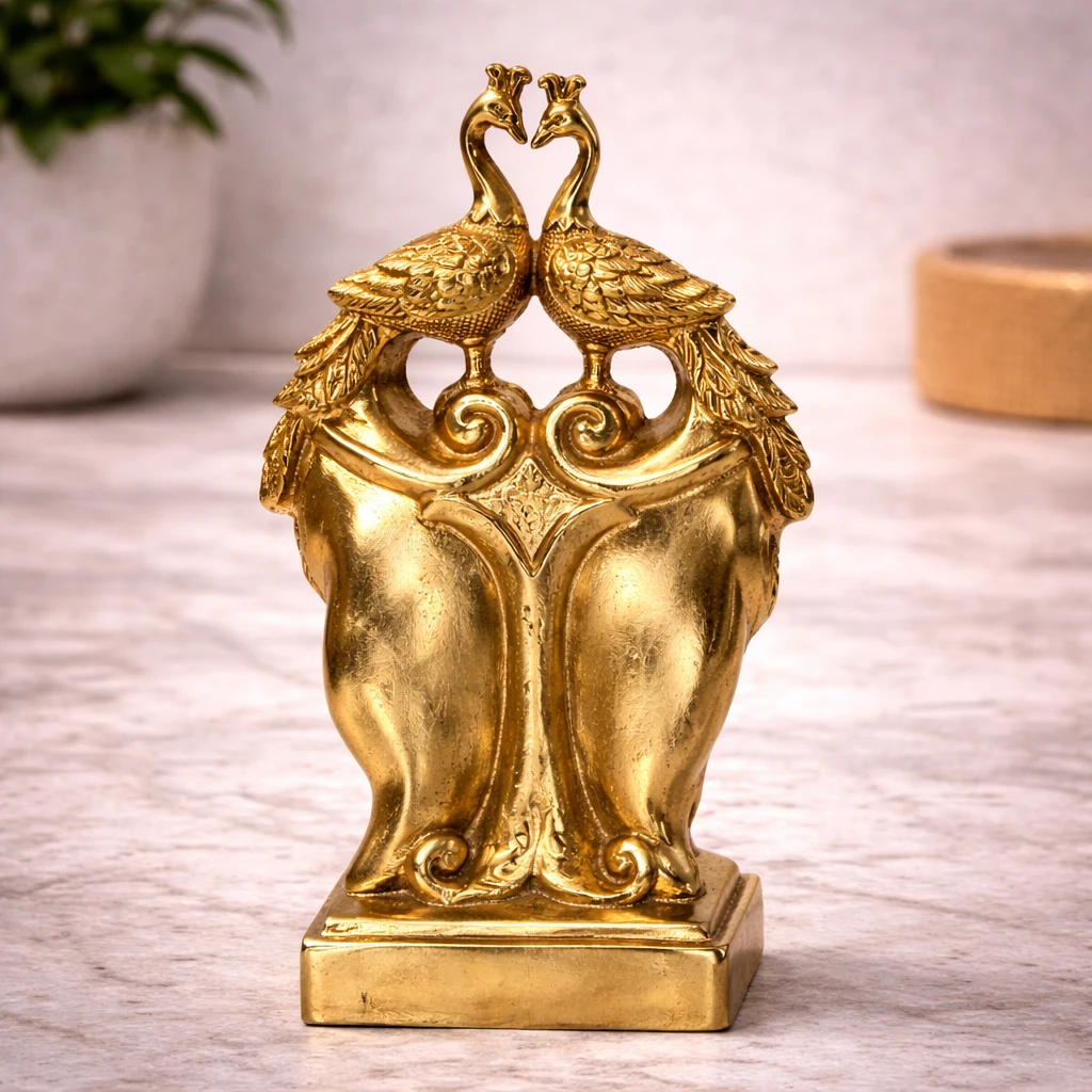 Brass peacock Couple with intricate feather